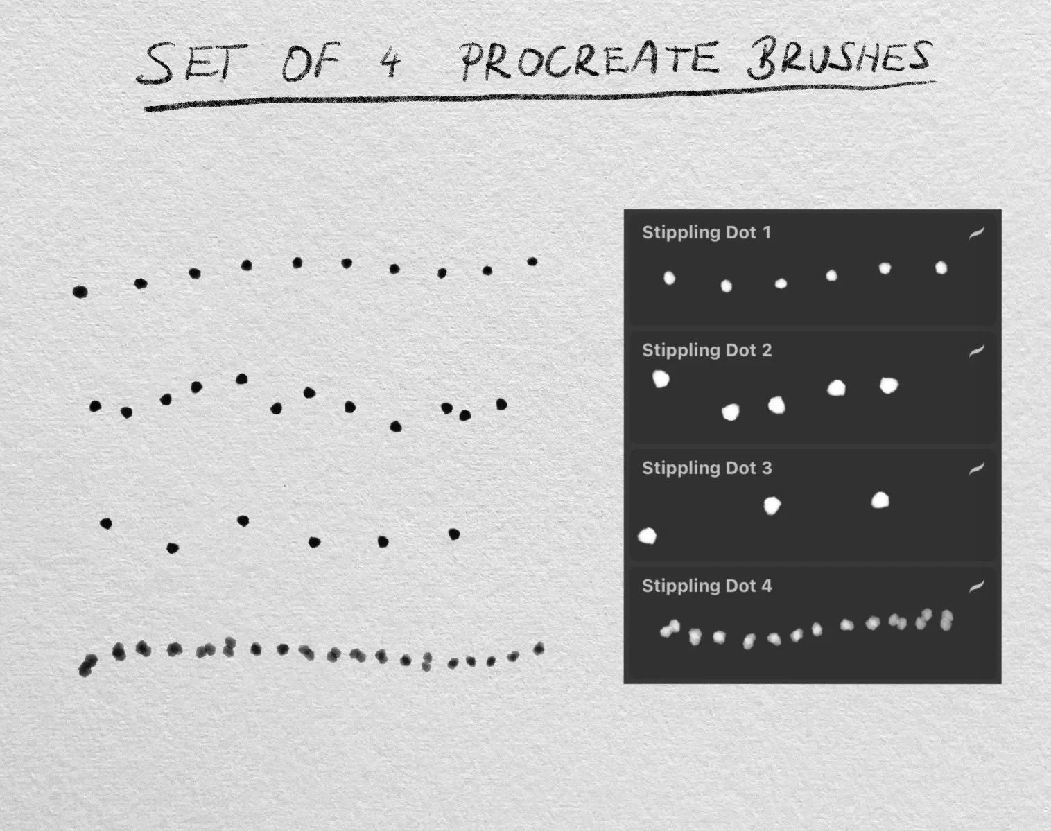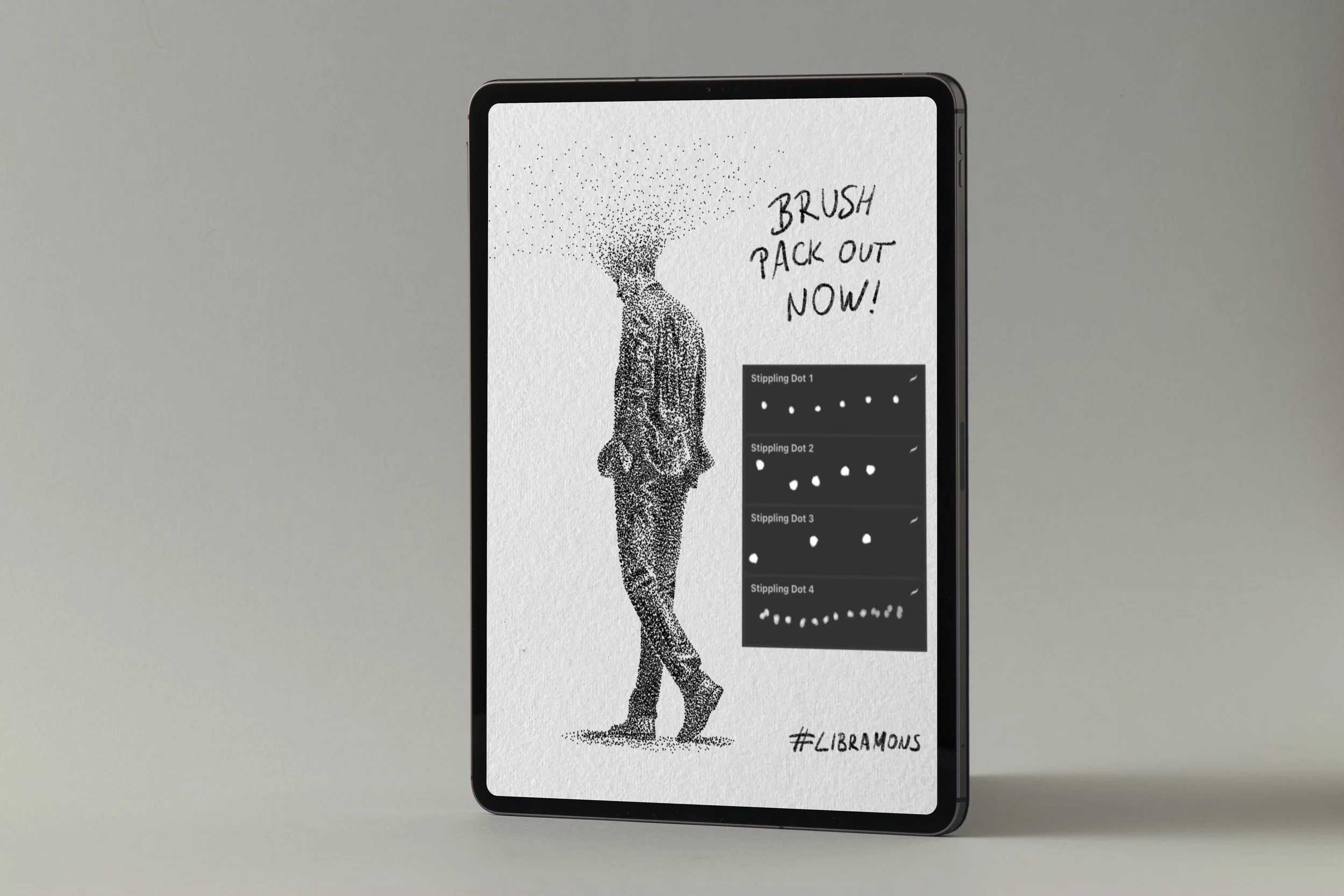 Túto sadu štetcov som vytvoril z jediného atramentového bodu na papieri. Každý bod som naskenoval a starostlivo upravil tak, aby si zachoval svoju prirodzenú krásu. Výsledkom je kolekcia stippling štetcov, ktoré uchovávajú organický charakter a hmatateľný pocit tradičného atramentu, no zároveň prinášajú slobodu digitálneho umenia.